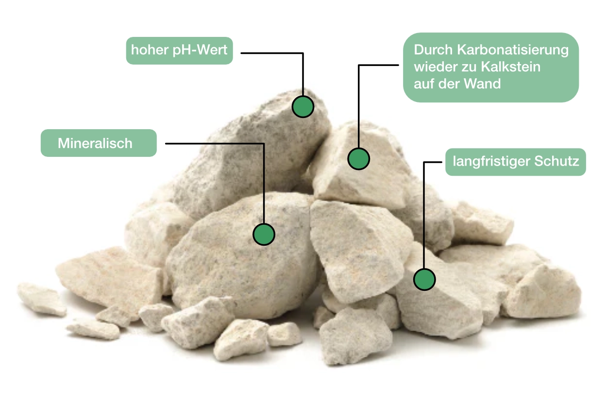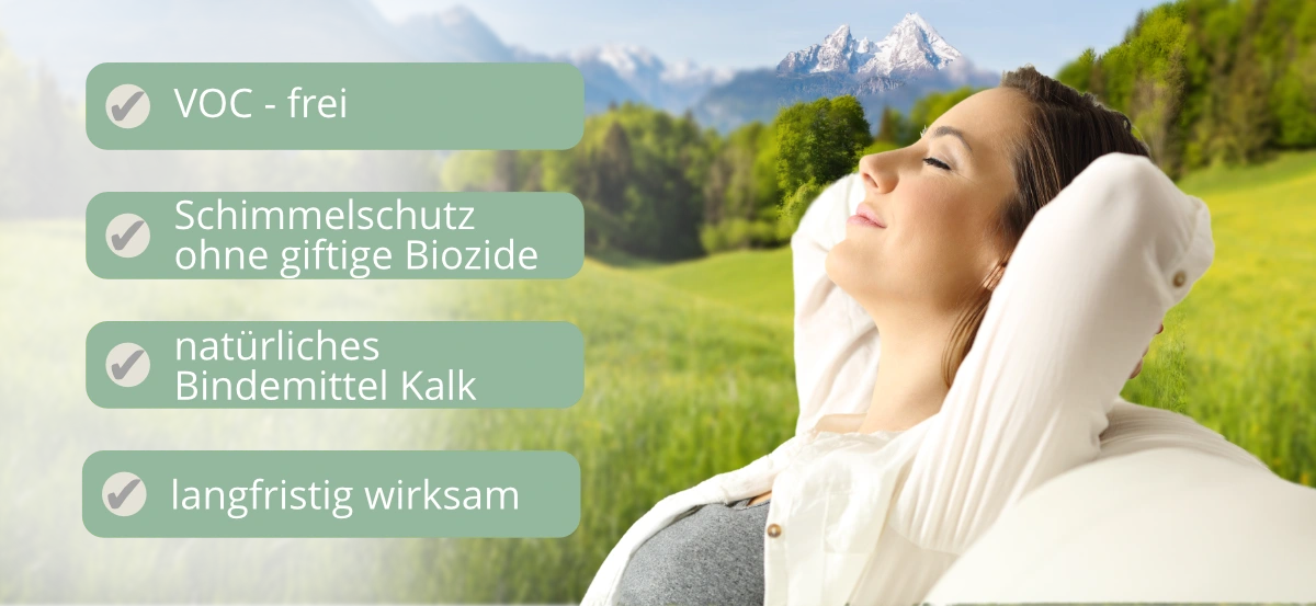 Dank ihrer antistatischen Eigenschaften reduziert die Kalkfarbe die Ansammlung von allergenem Hausstaub an den Wänden. Die diffusionsoffene, kapillaraktive Oberfläche reguliert die Feuchtigkeit natürlich und hemmt Schimmelbildung – ein wichtiger Aspekt für Allergiker, die besonders empfindlich auf Schimmelsporen reagieren.